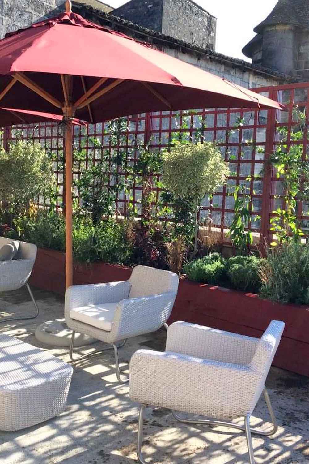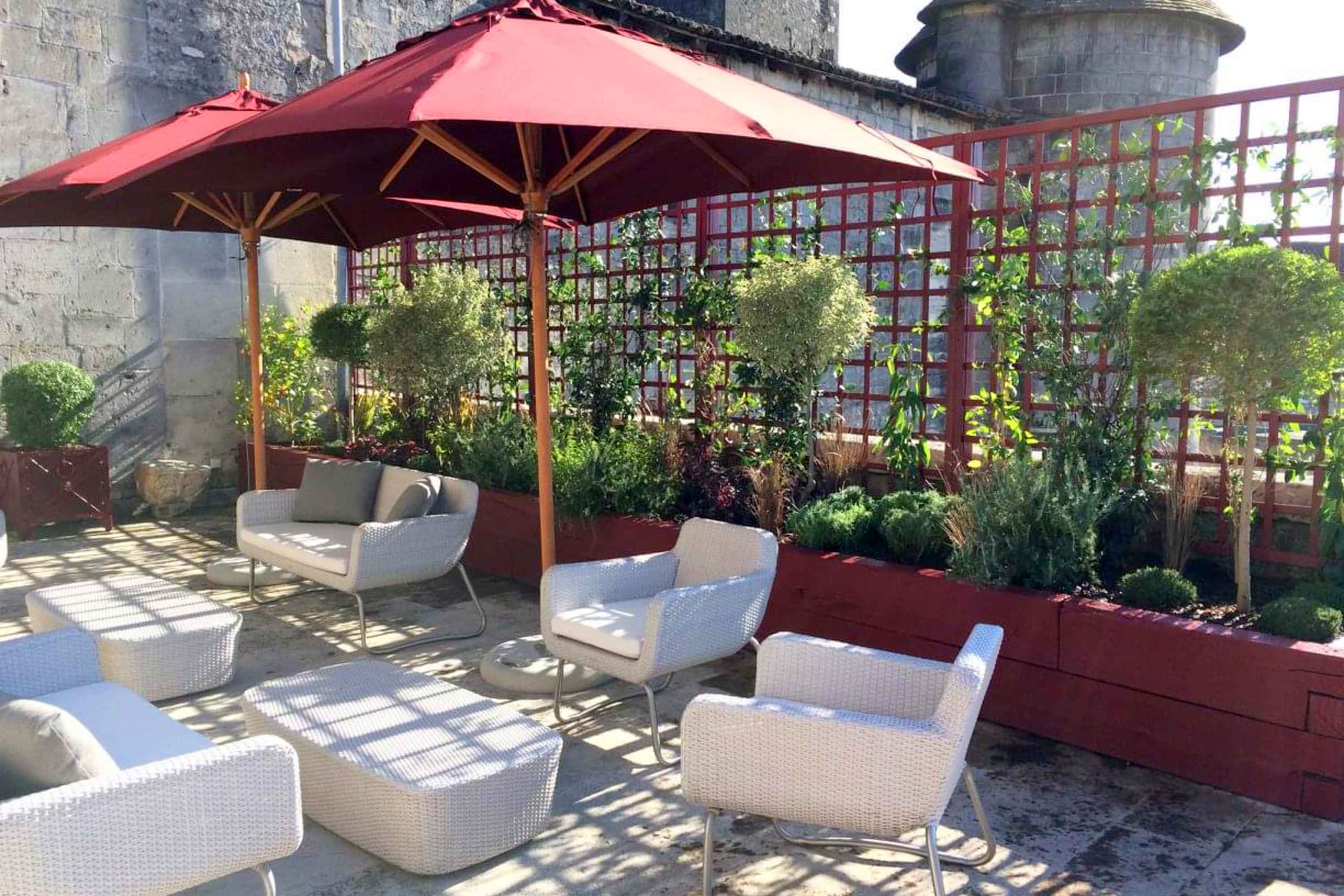 Travail sur mesure réalisé en collaboration avec Bruno Hyvernaud de L’Atelier Soleil, avec la création de modules démontables spécialement conçus pour préserver l’intégrité du dallage historique du Château de François Ier, bâtiment classé. Ces structures, entièrement végétalisées, s’intègrent harmonieusement au site sans en altérer le patrimoine.
