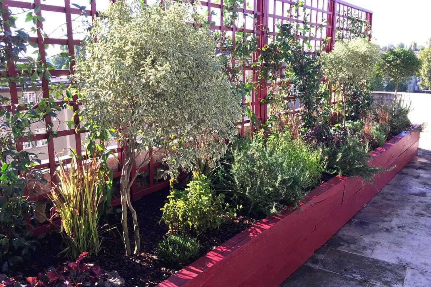 Un espace détente a également été aménagé sur le toit-terrasse du bureau de la direction, offrant un lieu de repos en hauteur. Une barrière végétale a été installée afin d’apporter intimité, fraîcheur et continuité paysagère.