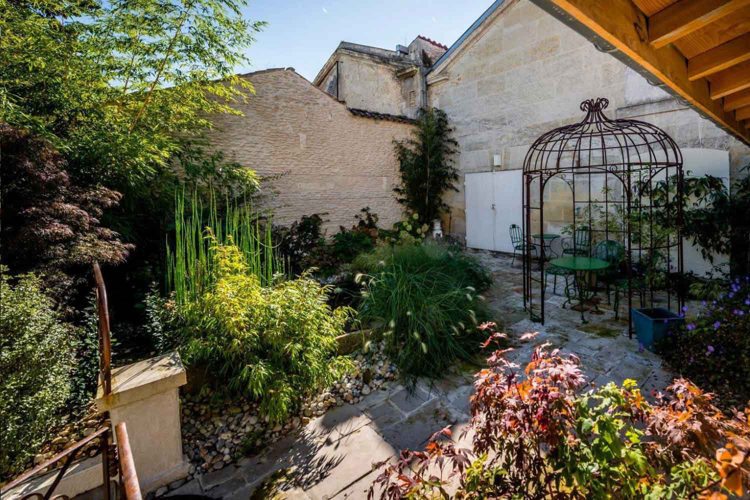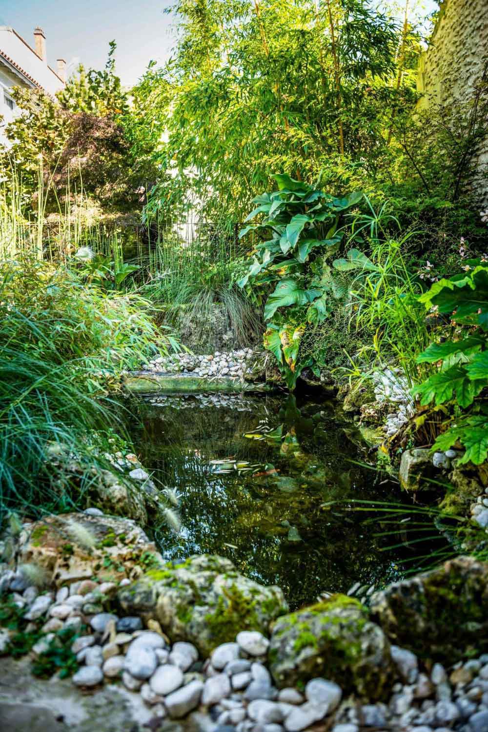 japonisant raffiné, composé d’un bassin à carpes koï et d’une gloriette cage à oiseaux. Ce recoin,