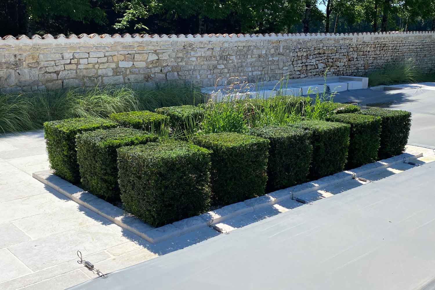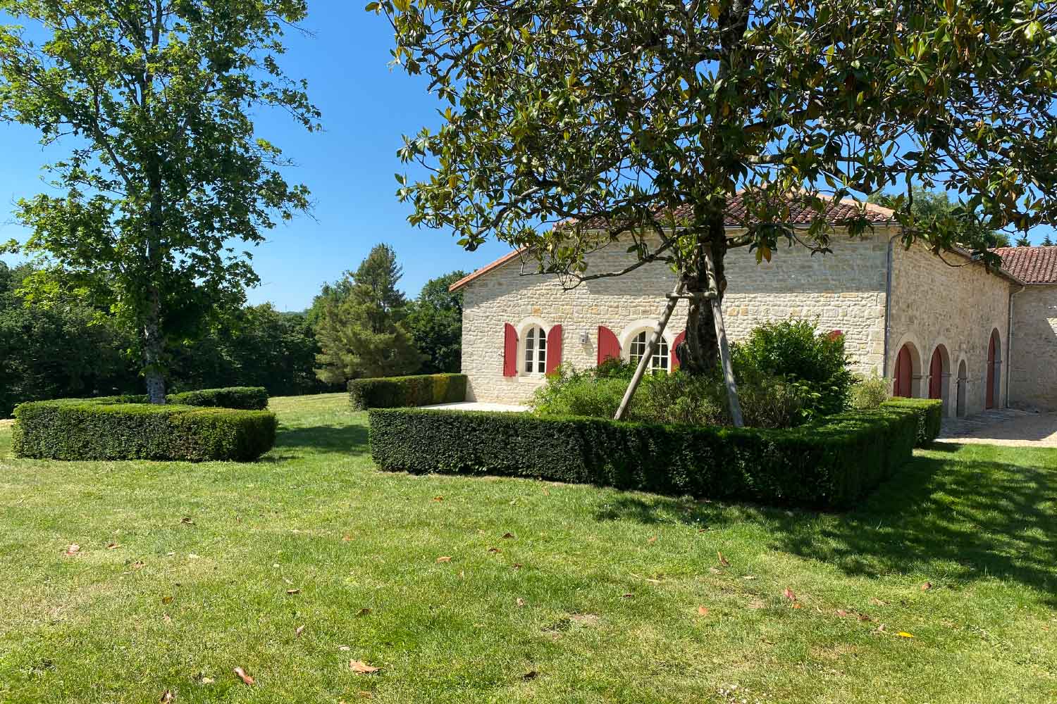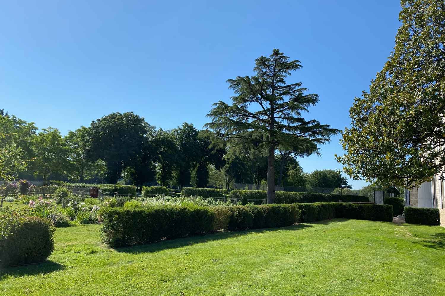 De nouveaux bosquets et haies ont été créés pour dissimuler les bâtiments environnants tout en favorisant la biodiversité. Véritables refuges pour la faune et les insectes pollinisateurs, ces haies offrent aussi une barrière naturelle contre les vents froids d’est.